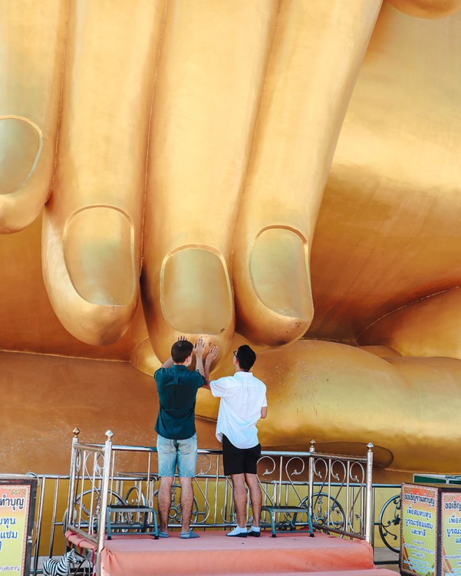 Многие люди приходят в храм Ват Муанг в провинции Анг Тонг, чтобы дотронуться до правой руки статуи Будды и загадать желание. Эта статуя Будды в настоящее время является самой высокой статуей в Таиланде, второй по высоте статуей в Юго-Восточной Азии и седьмой по высоте в мире. Монумент имеет высоту 92 метра (300 футов) и ширину 63 метра (210 футов) 💛