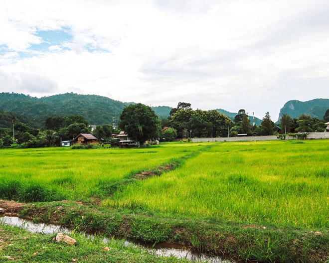 Eco-tourism is a very fast-growing industry in Thailand. And even if you are not particularly interested in agriculture, we still recommend trying this highly unusual cycling adventure through the local community. Out of the blue, we had a lot of fun exploring the local orchard, the beautiful ancient temple, the last rice field in the region, and even tried making a local souvenir. But first things first!