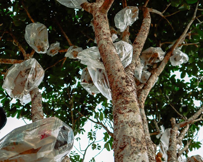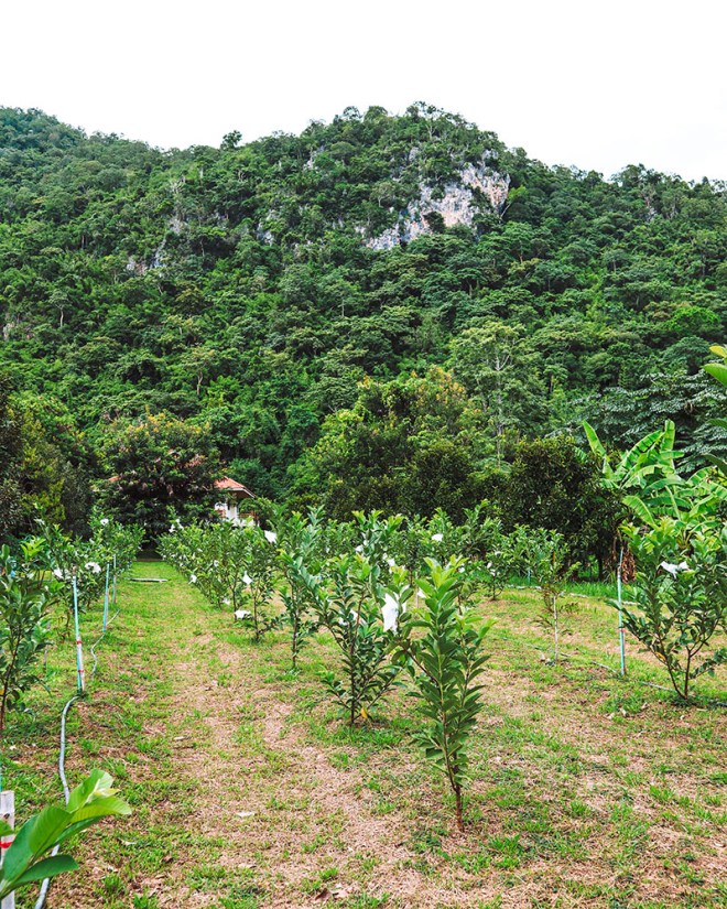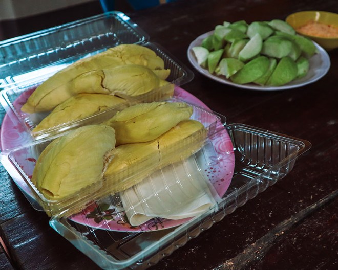 After the inspection, we were invited to a table to try the local durian and guava. The fruits were very fresh, sweet, and juicy. We were told that wild elephants often descend from the mountains to eat fruits and corn. When we asked what they were doing with the elephants, we were told: “What can you do with a huge elephant? Just waiting for it to finish and leave our gardens.” We liked that the animals were given this opportunity to snack.