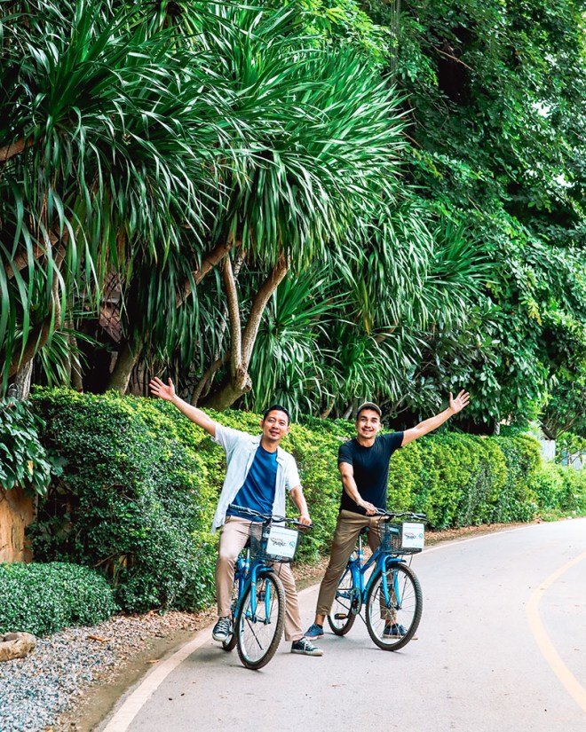 Upon arrival, we were offered cool water and herbal tea from Butterfly Pea flowers. Then we were asked to choose bicycles and follow the leader.