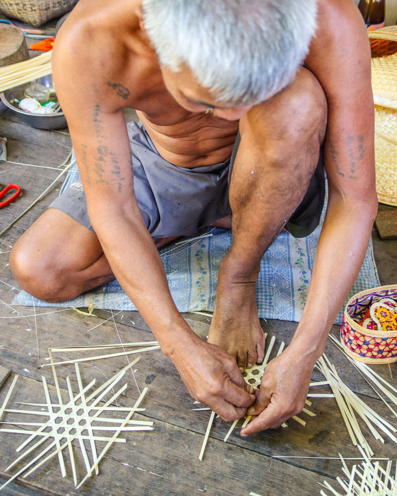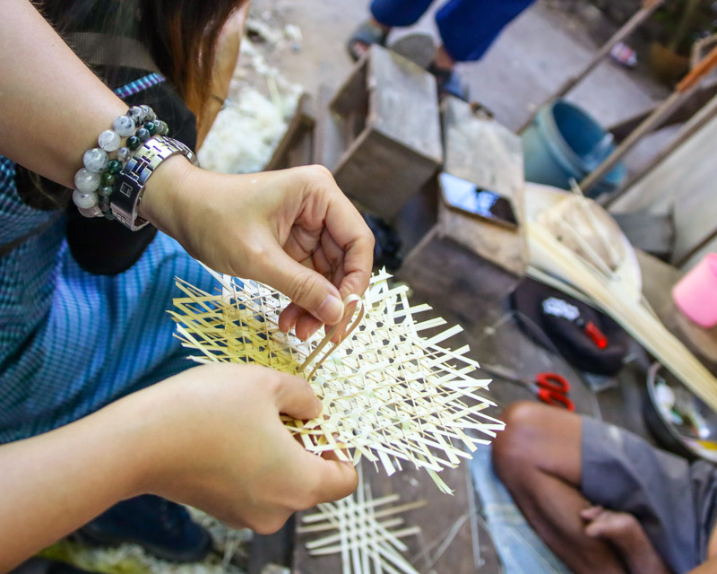 Кстати, в этой деревне мы также успели попробовать приготовить местную закуску, от которой мы остались в восторге, а также нас научили плести местные узоры из соломы. Ещё чуть-чуть и мы станем настоящими тайскими дядьками, купим дом в деревне и начнём сельскую жизнь. И каждый раз мы так думаем, мы вспоминаем, что Лан боится любых змей, а Аон боится любых насекомых и вообще всего…