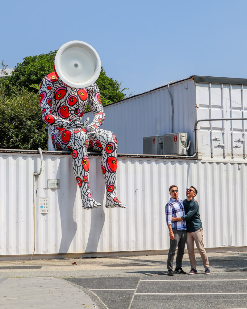 At the entrance of this amazing building, you will be greeted with a nonconcrete looking see-saw piled high with gigantic cones of ice cream, giving away that this is a café. The seats are booked like hot chocolates – pun intended, and so if you want to enjoy some ice cream before taking the shots of the building, you will have to come earlier. An entry ticket costs 150 NTD and it includes 2 scoops of gelato.