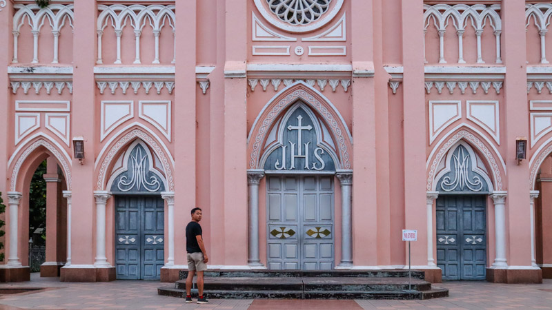 Last but not the least, Da Nang Cathedral is a pink-painted edifice that earns its reputation as one of the most unique catholic churches in Vietnam. The church features a simple interior design of engraved motifs, rhombic-shaped arches, medieval-style stained glass windows of various saints, and statues depicting events from the Holy Bible. It is considered to be a holy place for photography, The interior and the beautiful pink exterior of the cathedral makes it a must-have for your Instagram.