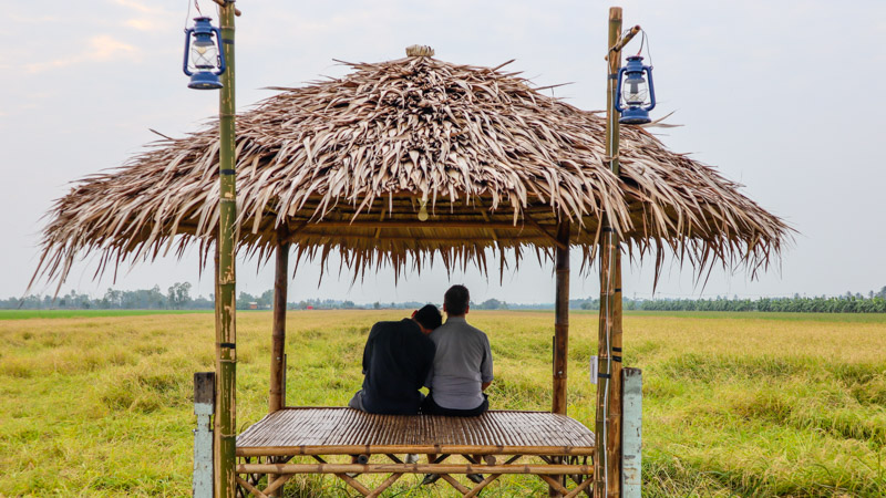 There is a bamboo bridge across the canal to take a walk and take pictures. The atmosphere here is very relaxing with cool breeze blowing all day long. Have half day runaway to eat and sip drinks on nature.