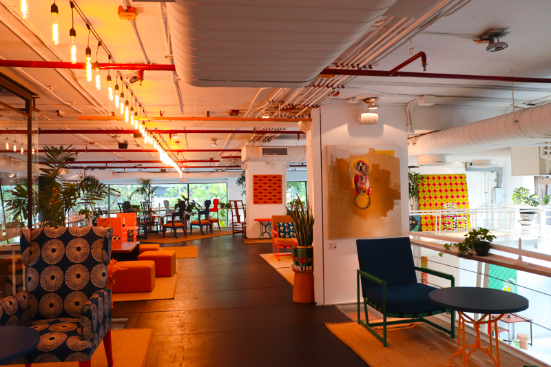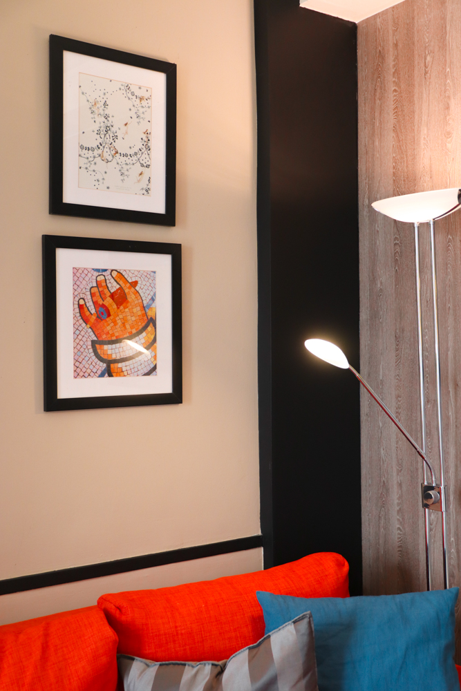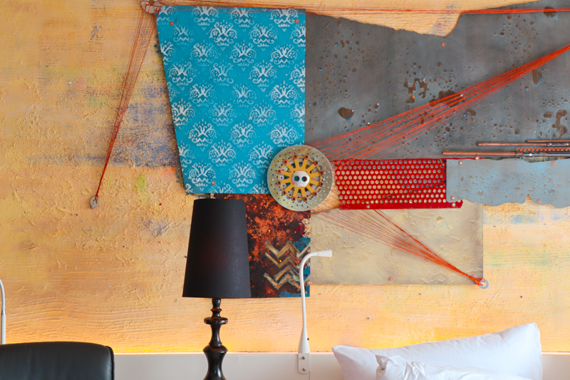 Due to the design-related concept of the hotel, there are many artworks to be found in the room. Even the wall behind the bed was decorated with special artsy installations. We were lucky enough to stay in a large room, so we also had a sofa, a table with a view from the window, and several areas to work or just relax.