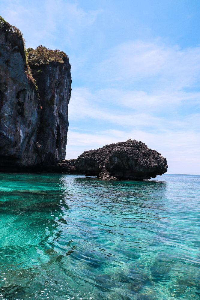 Monkey Beach is a small 200-meter long beach on the west coast of Phi Phi Don Island. This spot is extremely beautiful and popular, a standard stop for almost all excursions coming to the Phi Phi Islands from Phuket and the nearby resorts.