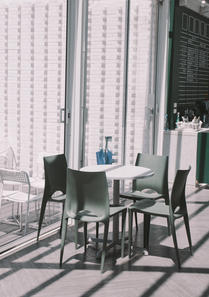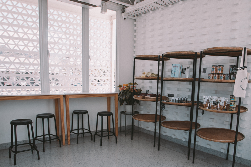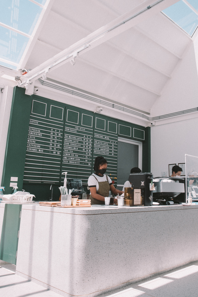 The cafe is designed like a large attic room with half of the shop inside is a window. Nice idea to have a drink with gorgeous views of the mountains and meadows. The interior of the shop is minimal but at the same time, it looks comfortable and pleasant to chill for a bit.