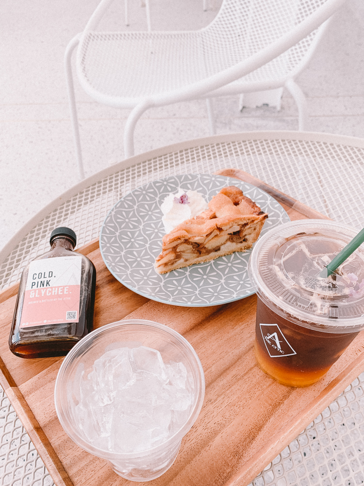 The drink menu has a lot to choose from, both Non-Coffee and Coffee drinks. In addition, we loved their bakery menu. The cakes were delicious looking and we were told they are baked fresh every day… Of course, we couldn’t resist and get apple pie that turned to be amazing! We also had lychee cold brew coffee and iced yuzu coffee, both choices weren’t something we usually get but we loved our drinks even coffee here is a bit too soft for us.