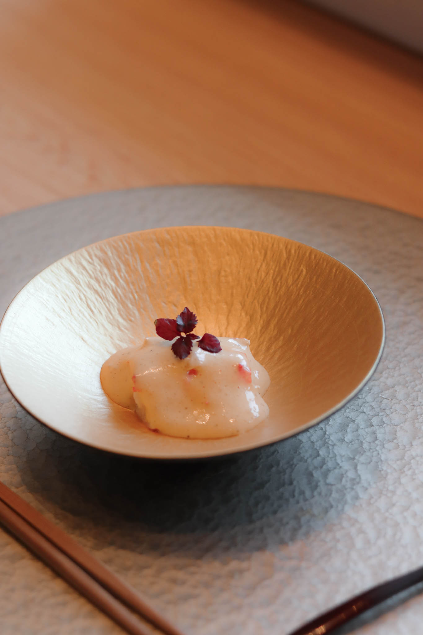 Each course arrived beautifully plated, with a quiet confidence that didn’t overcomplicate the flavours. Even the tempura course — often an afterthought elsewhere — was light, crisp, and full of nuance (snow crab, lotus root, and kogomi mountain vegetables were standouts). Dessert closed with fresh fruit and a silky strawberry pudding with warm egg yolk sauce.