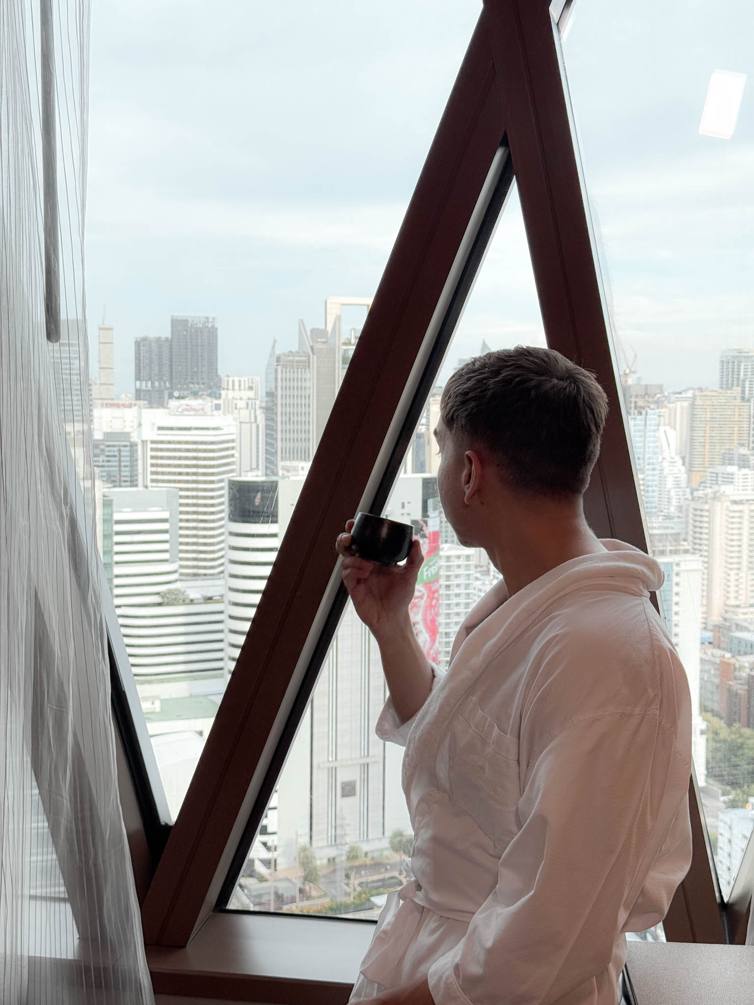 Even in the centre of the city, the suite gave us space to slow down and enjoy the moment — just us, some tea, and that panoramic Bangkok skyline.